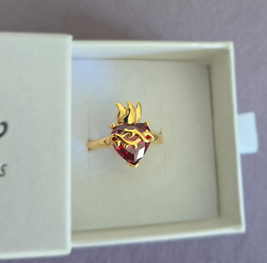 Collar fabricado en plata con baño de oro, cuenta con un diseño reversible: un lado con corazón cubierto de circonitas y el otro pulido con una circonita central.